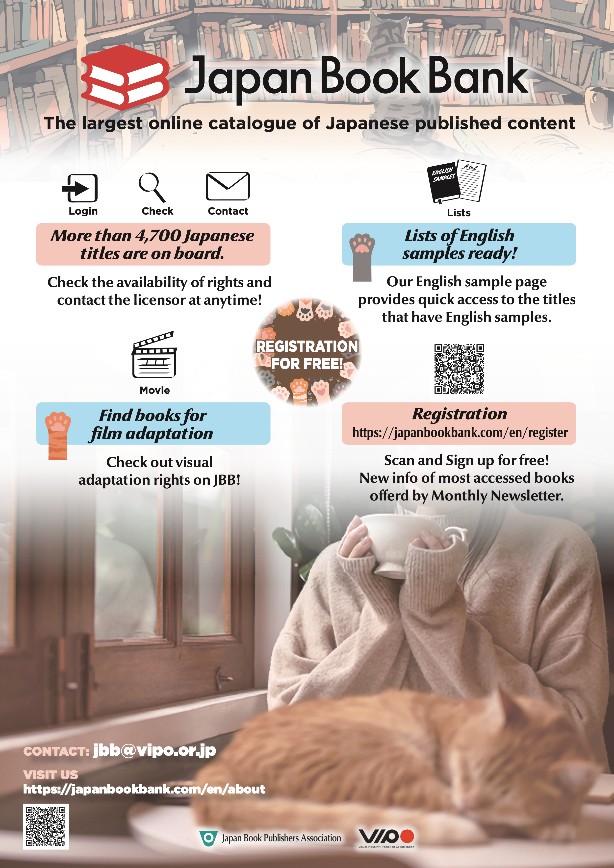 You can read the book samples of that are featured, and a QR code on the book will lead you to rights and publisher information in Japan Book Bank on the spot!